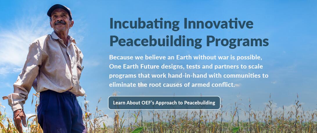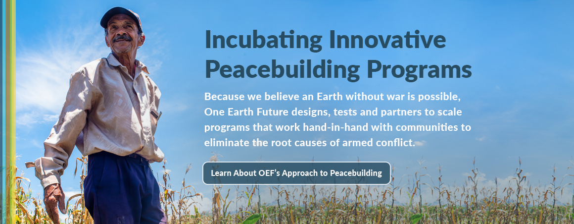 Incubating Innovative Peacebuilding Programs Because we believe Earth without war is possible, One Earth Future designs, tests and partners to scale programs that work hand-in-hand with communities to eliminate the root causes of armed conflict. Learn About OEF’s Approach to Peacebuilding