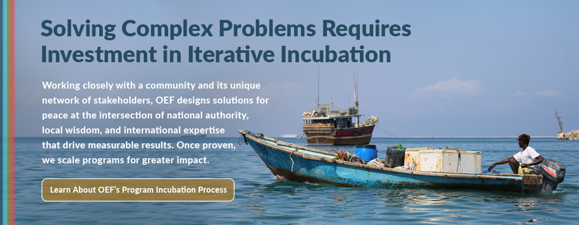 Working closely with a community and its unique network of stakeholders, OEF designs solutions for peace at the intersection of national authority, local wisdom, and international expertise that drive measurable results. Once proven, we scale programs for greater impact.