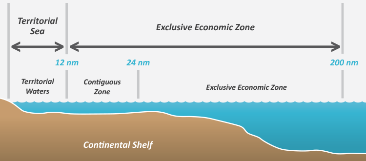 An EEZ is an area beyond and adjacent to the territorial sea, under which the rights and jurisdiction of the coastal state and the rights and freedoms of other states are governed by the relevant provisions of the United Nations Convention on the Law of the Sea (UNCLOS). EEZs cannot extend beyond 200 nautical miles from the baselines from which the breadth of the territorial sea is measured. Within the EEZ, the coastal state has: