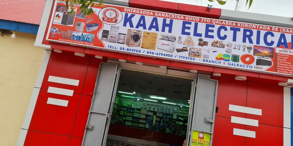 Kaah Electrical General Trading (“Kaah”) is a renewable energy company established in 2003. The company sells solar panels, inverters, solar water pumping systems, off-grid solar systems, solar streetlight systems, and accessories. Beyond the sale of these products, Kaah offers installation, testing, design, and post-sale support. The company's operations extend through Bosaso, Garowe, Galkayco, and Qardho.